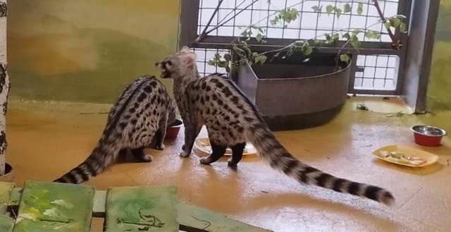 Кроме того, в столицу Урала привезли генетов Коллет и Белль. Их можно найти на втором этаже павильона «Южный». Самки родились в 2016 году в Новосибирском зоопарке. Генеты являются хищниками из тропического семейства Виверровые. Стоит отметить, что в зоопарке уже проживают их родственники по семейству – бинтуронги и мусанги.