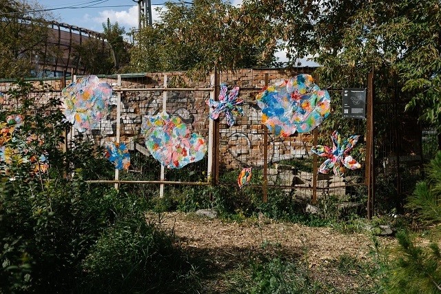 Автор проекта художница и выпускница школы паблик-арта «ЧО» Ульяна Розина. Яркое произведение лишь сперва кажутся привлекательными. Если посмотреть на них более внимательно, они напомнят зрителю бензиновые пятна на воде. Композиции дают отсылку к одной из главных проблем уральского мегаполиса – загрязненность рек и водоемов и печальные последствия, которые влечёт использование надувных игрушек из поливинилхлорида (ПВХ).