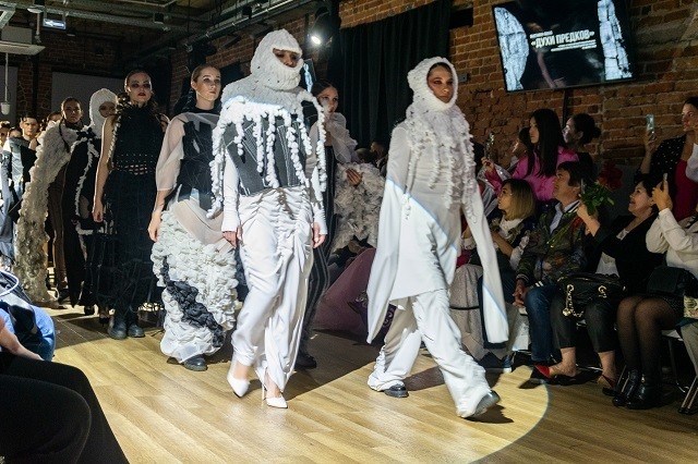 Вчера, 13 сентября, в креативном кластере «Домна» состоялась выставка-показ «Духи предков». Дизайнеры Назар Алмазбеков, Александра Гузова, Татьяна Фоминцева представили оригинальные наряды, на которые их вдохновил древнейший артефакт.