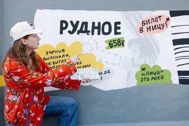 «Когда я увидела, что напротив забора находится Южный автовокзал, то сразу возникла идея сделать билеты в города, в которые можно отсюда добраться. Работая над проектом, мы поняли, как мало мы знаем про родной регион и соседние города. Наши «Билеты» – прекрасная возможность узнать про них что-то новое и удивительное и, возможно, устроить себе маленькое путешествие в эти края», – рассказала художница Катя Гущина.