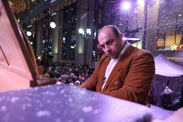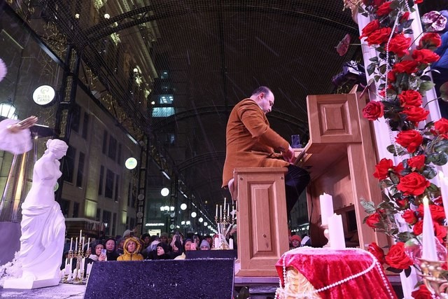 На цифровом органе сыграл титулярный органист филармонии Тарас Багинец. Он признался, что это самые необычные условия, в которых ему приходилось давать концерты. Погода не была благосклонна к организаторам - перед самым началом концерта начался сильный снегопад. Однако, музыкант мужественно отыграл почти полчаса. Он исполнил композиции великих классиков Баха и Шостаковича, а также произведение неизвестного композитора эпохи Возрождения.