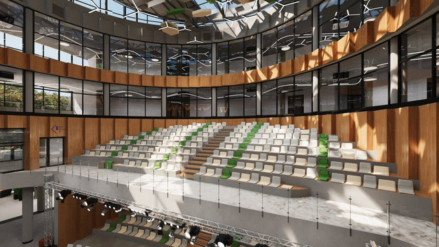 «Та самая комната разгрузки и другие помещения нового здания СУНЦ УрФУ на кампусе в Новокольцовском, как они задуманы архитекторами. Сердце здания — атриум и большой зал, который будет использоваться и для лекций, и для творческих мероприятий», — сообщается в Telegram-канале «УрФУ».