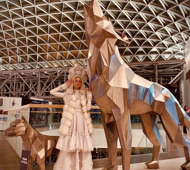 «Данный образ был представлен на модных подиумах Екатеринбурга, Санкт-Петербурга и Москвы, а также в Италии, на конкурсе исторических костюмов и двух карнавалах, в том числе в Венеции. На карнавале в Вероне коллекция «Маленькая хозяйка медной горы» была в качестве ведущей группы шествия совместно с представителями власти и культуры Италии. Один из кокошников был подарен Русскому Дому в музей истории и культуры в Вероне. Наряды удостоены множества наград российских и зарубежных конкурсов и фестивалей в том числе Премии от Дома Моды Вячеслава Зайцева и РОСКОСМОСА», - рассказал совладелец бренда «VASENKOVY» Андрей Васеньков.
