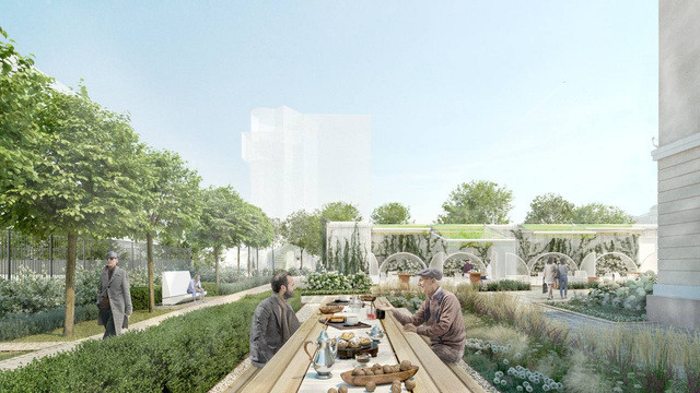 По проекту авторов сад станет общественным городским пространством. Концепция парка основана на трех принципах: духовность (поиск ориентиров в жизни), студенчество (поиск единомышленников) и реверберация (поиск тихого уголка в центре города). Исходя из этой идеи пространство разделят на пять зон: площадка для мероприятий, зона трапезной с общим столом под открытым небом, духовная, студенческая и «нейтральная» части.