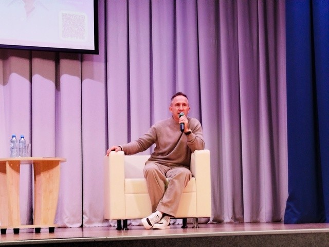 Актёр и телеведущий Оскар Кучера провёл лекцию о книгах и чтении для екатеринбургских школьников.
