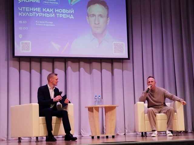 Встреча со звёздным гостем состоялась в актовом зале средней общеобразовательной школы №1. Оскар Кучера выступил перед учащимися в качестве лектора общества «Знание» с темой «Чтение как культурный феномен: диалог поколений». Он вспомнил свои школьные годы, рассказал о любимых книгах, посоветовал, какие произведениях стоит обязательно прочитать, будучи учеником. Актёр отметил, что в его детстве не было так много развлечений и социальных сетей, поэтому книги были основным источником знаний и радости.