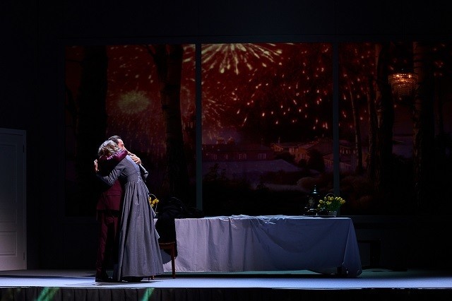 Стоит отметить визуальное оформление спектакля. Благодаря проекционным декорациям зрители видят часто меняющуюся погоду за окном, которая передаёт тревожное состояние главной героини: солнце заслоняют хмурые тучи, и спокойный умиротворённый день превращается в суровую бурю.