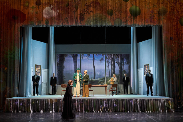 Кроме того, на протяжении всего спектакля зритель видит цветы: они появляются то в виде проекции на кулисах, то в руках у героев. Можно предположить, что режиссёр хотел напомнить о хрупкости жизни, ведь если не ухаживать за цветами, они быстро погибают.