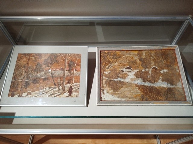 Тему природы продолжают работы Ивана Пустовгарова, в которых он использует уникальную технику – фитоживопись. Свои пейзажи-мозаики он собрал из высушенных листьев, цветов и лепестков. Вдохновляясь красотой уральского леса, он старался запечатлеть не конкретное место, а сказочные воспоминания из детства с нотками ностальгии.
