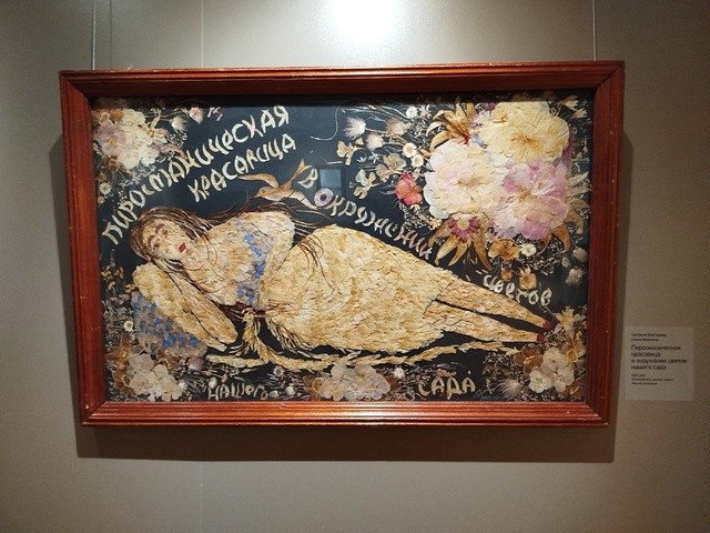 Образ природы при помощи засушенных растений Урала перенесли на свои холсты сёстры Елена и Светлана Мазунины. Художницы создают флористические пано, напоминающие старинный гобелен или фантастический гербарий. К примеру, на выставке можно увидеть «пиросманическую красавицу» в окружении цветущего сада или работу, посвященную «Году тигра». Рядом с ними соседствуют холсты неизвестных художников. У коллекционера Натальи Коловершиной остались лишь их инициалы или часть имени.
