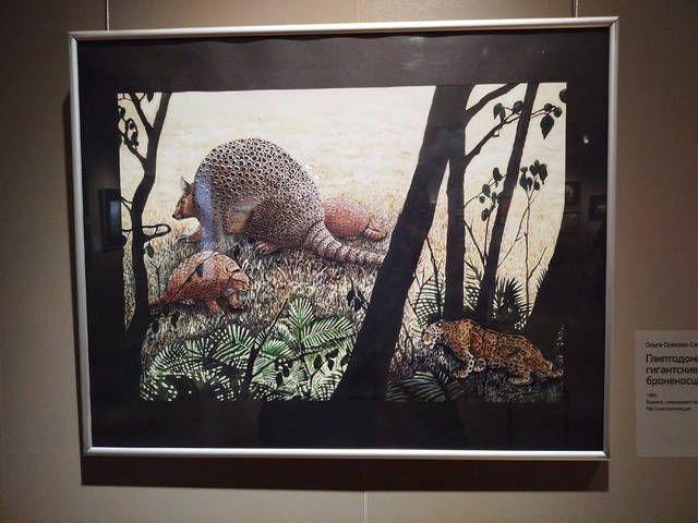 Большую часть выставки занимают работы Ольги Ореховой-Соколовой. Её уникальный метод Наталья Коловершина определила, как «художественная палеонтология». Художница стремилась превзойти фотографов, поэтому с ювелирной точностью изображала доисторический мир и животных, которых никогда не видела. Такой подход позволял научно реконструировать образ динозавров, мамонтов и экзотических птиц - фороракосов.