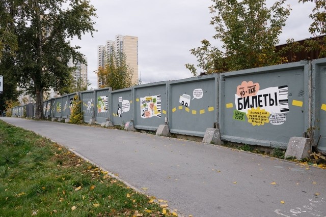 Первый арт-объект под названием «Билеты» расположился на 120-метровом заборе около Автовокзала. Его создала художница из Нижнего Новгорода Катя Гущина вместе с юными екатеринбуржцами. На бетонной поверхности они изобразили локальные сюжеты про малые города, куда можно уехать с Южного автовокзала.
