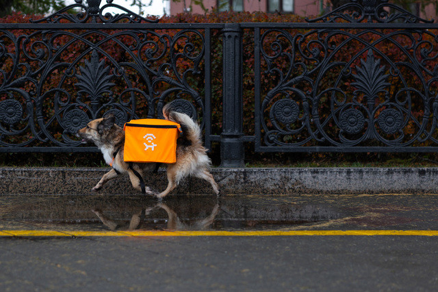В Екатеринбурге заметили собак с оранжевыми рюкзаками, с помощью которых они раздают wi-fi.