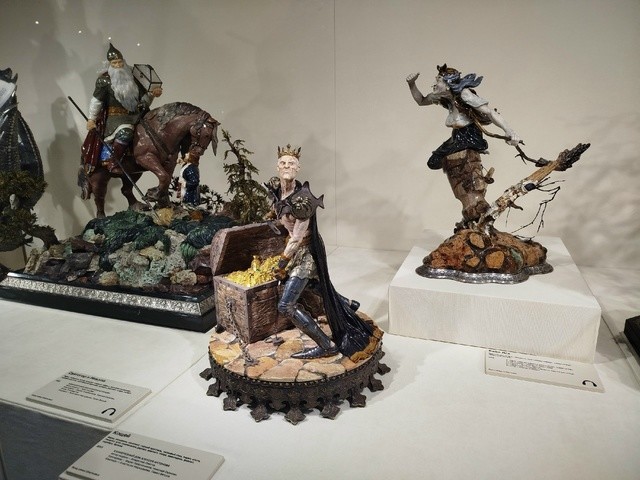 В витринах по всему периметру зала разместилась выставка «Легенды Камня» - скульптуры из собрания Фонда семьи Шмотьевых, созданные Студией камнерезного искусства «Святогор», Камнерезным домом Алексея Антонова и Академией камнерезного искусства Григория Пономарева. Экспозиция приурочена к 300-летию камнерезного искусства Урала и 15-летию собрания Фонда семьи Шмотьевых.