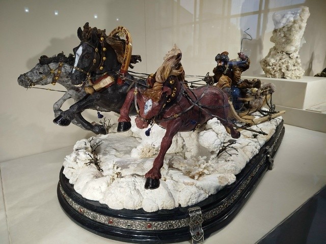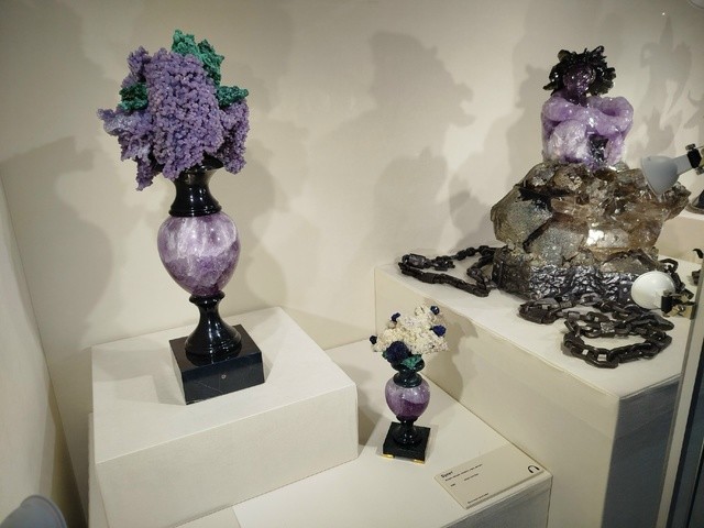 Здесь можно увидеть камейную резьбу по кремню или кварцу, работы из крупных кристаллов, уникальные букеты, собранные из почти не тронутых резцом.