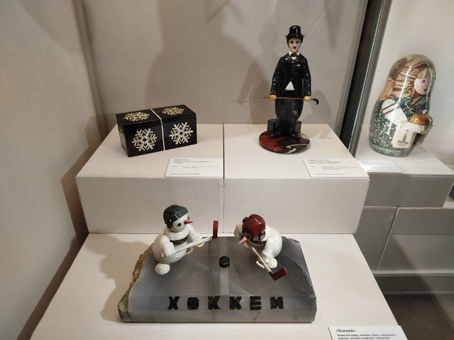 Кроме того, в выставочных витринах можно увидеть фигурки представителей разных народов, цветочные композиции, животных, вазы, шкатулки и многое другое. Также в экспозицию включили эскизы, архивные документы и фото.
