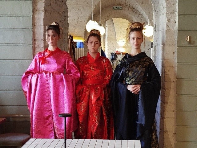 Модели прошлись по импровизированному подиуму под традиционную китайскую песню в исполнении Ли Юйцзя и Ван Цзяи - студенток Уральской государственной консерватории имени М.П. Мусоргского, где 17 марта стартует V Международный российско-китайский музыкальный фестиваль.