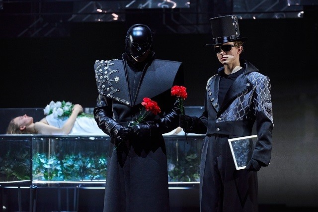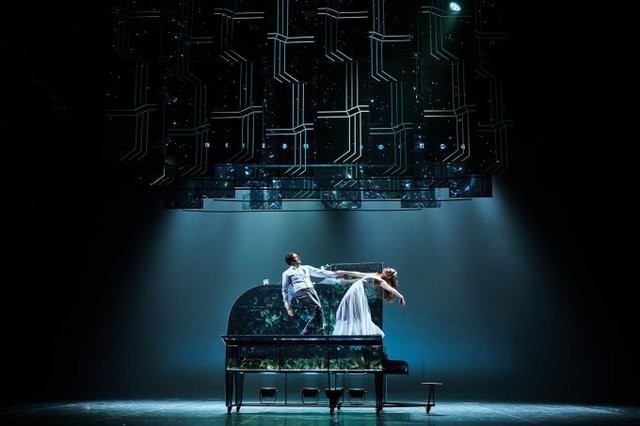 «Многоуровневыми декорациями мы хотели показать наш мир, который во многих сферах связан с интернетом. Мы уже не можем представить себя без телефонов и компьютеров. В спектакле этот искусственный мир с развлечениями располагается сверху, а под ним находится рояль с цветами, который символизирует цветущий сад и любовь», - рассказал Алексей Паненков.