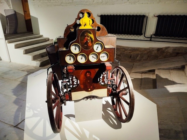 Четырёхколёсная открытая повозка является первоклассным для своего времени изобретением как по конструкции, так и по отделке. Её особенность заключается во встроенных механизмах — «верстомере» (путемерный прибор) и органе, который воспроизводит шести мелодий песен, типичных для ХIX века: «Во саду ли, в огороде», «Ах, вы, сени» и другие.