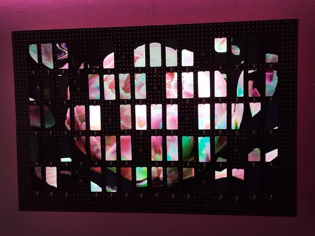 В интерактивной инсталляции «Синхронизация» Миша Надымов показал, как глубоко переплетаются цифровое и физическое пространство. Такой привычный и личный предмет, как смартфон, превращается в пиксель коллективного полотна. Каждый экран телефона — отдельный голос и одновременно часть общего произведения. Пустые ячейки приглашают зрителя включиться, выбрать своё место. Вставляя телефон, участник принимает решение: слиться с общим ритмом или сохранить собственный такт.