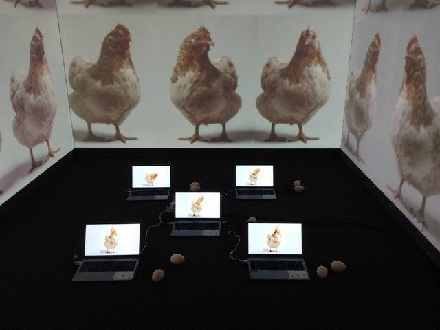Кристина Агеева из Москвы создала медиаинсталляцию «Цифровой инкубатор», в которой возвращает зрителей к вечному вопросу, что было первым — курица или яйцо? Также автор отмечает, что с приходом цифровых технологий, может возникнуть другой вопрос.