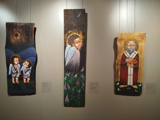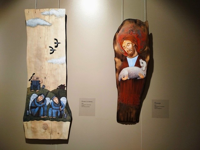 Раньше художник обклеивал доску холстом и работал со смоляными породами - красной древесиной, елкой. Сейчас он пишет прямо на дереве и может выбрать любой материал. Автор признался, что в последнее время полюбил работать с дубом.