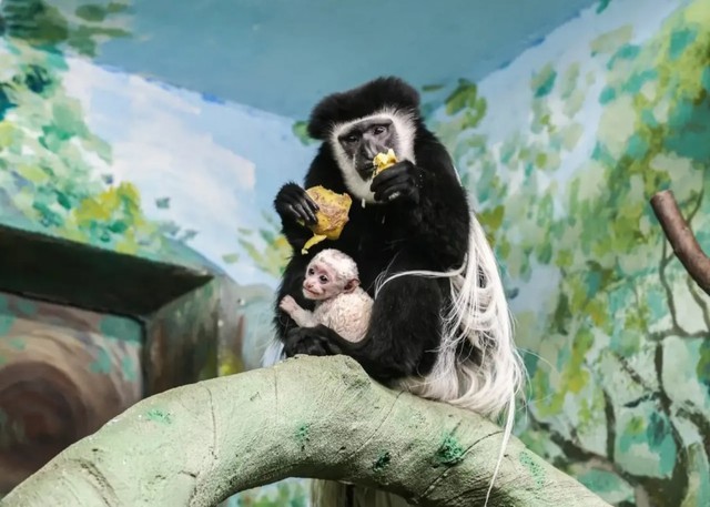 В зоопарке уральской столицы пополнение - у восточных колобусов Кита и Иры 25 марта родился малыш.