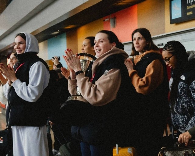 В аэропорту «Кольцово» болельщики устроили встречу команде БК УГМК, которая вернулась из Курска с громкой победой и статусом сильнейшего клуба страны.