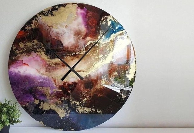 С нами вы погрузитесь в мир искусства, научитесь работать с эпоксидной смолой и самостоятельно создадите настенные часы, имитирующие рисунок благородного камня мрамор. Причудливые переливы краски формируются почти сами собой. Все, что нужно художнику — развести смолу и, наливая на основу, создавать свой собственный шедевр.
