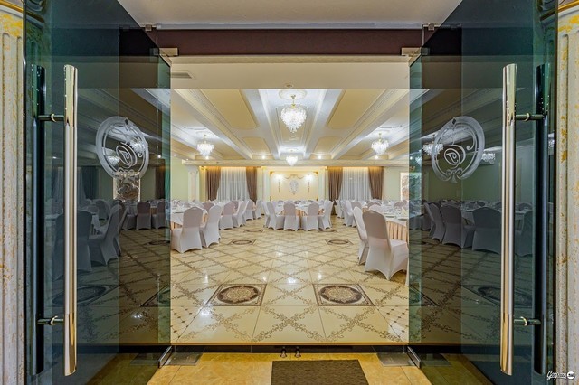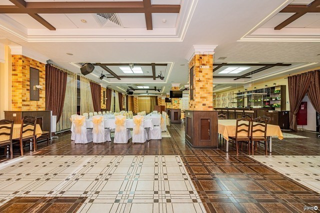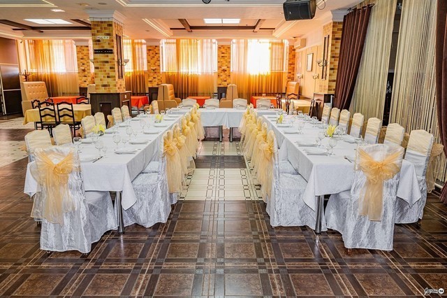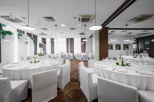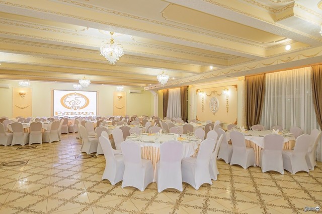 Вместимость: 3 банкетных зала вместимостью до 80, 120 и 500 человек.
