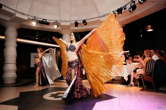 Стоимость банкета: 5300 рублей с человека (банкет+развлекательная программа). Сборный формат - 12, 13, 19, 20, 26, 27 декабря. В программе: профессиональная ведущая, диджей, живая музыка, конкурсы, розыгрыш приза от кафе, символ года - Лошадь, египетское танцевальное шоу, Дед мороз и Снегурочка, танец живота, шоу-балет.