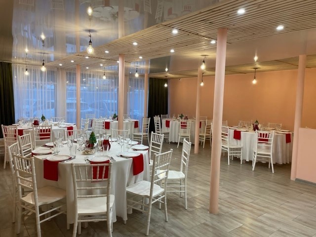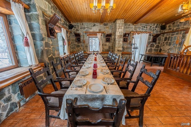 Вместимость: большой банкетный зал - до 60 человек; малый банкетный зал - до 30 человек; гриль-беседки на 12, 18, 25 и 30 человек.
