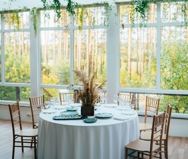 Вместимость банкетного зала: большой банкетный зал - до 150 человек; ресторан «Лес» - до 60 человек; зал «Корабельный» - до 30 человек; зал «Каминный» - до 20 человек.
