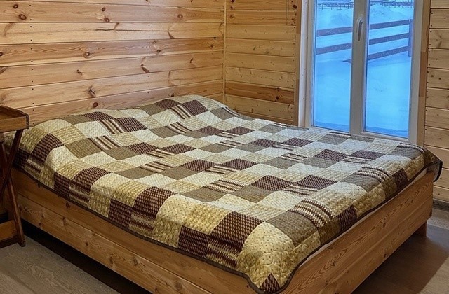 Также здесь можно арендовать одноэтажный (4 человека) и двухэтажный шале (6 человек, возможны дополнительные места). В коттеджах есть гостиная с обеденной зоной, мини-кухня, санузел с душевой и спальня (2 спальни в двухэтажном шале). Кроме того, на территории комплекса находятся дома-бани на дровах (до 8 человек, возможны дополнительные места), подогреваемый бассейн с чистейшей артезианской водой и зоной джакузи, сауна с панорамным видом на бассейн, ресторан, где готовят угощения русской, итальянской и американской кухни.
