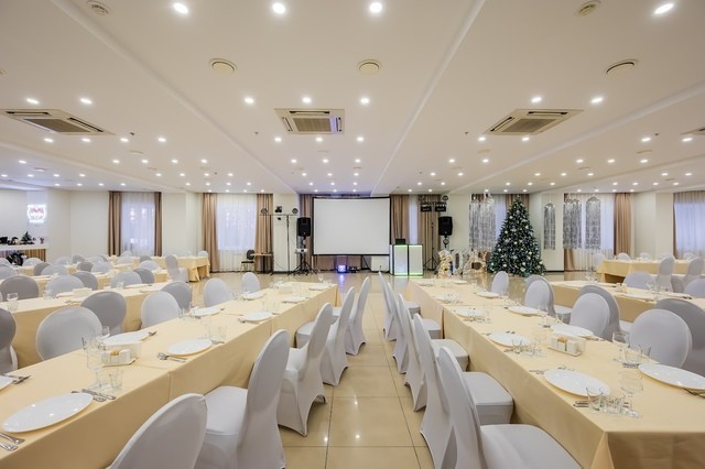 Вместимость банкетного зала: до 150 человек в формате банкета, до 200 в формате фуршета.