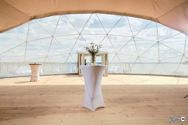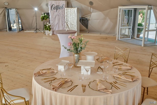 Банкетный зал «Остров» отлично подойдет тем, кто хочет отпраздновать новогодний корпоратив в окружении красивых пейзажей, не выезжая за пределы Екатеринбурга. Современное ивент-пространство расположилось в тихом месте на берегу живописного озера Шарташ. Добраться сюда из центра города можно всего за 15 минут. Пространство представляет собой геодезический купол площадью 300 квадратных метров, высота потолков составляет 7 метров. Внутри установлена климат-система и вентиляция, благодаря чему внутри комфортная температура в любое время года. Рядом располагается парковка на 20 машин, помещение для персонала, отдельная кухня для кейтеринга и их персонала. Сотрудники банкетного зала украсят помещение праздничным декором, сделают удобную рассадку гостей и предоставят музыкальное оборудование. Повара приготовят для вашего застолья вкусные угощения.