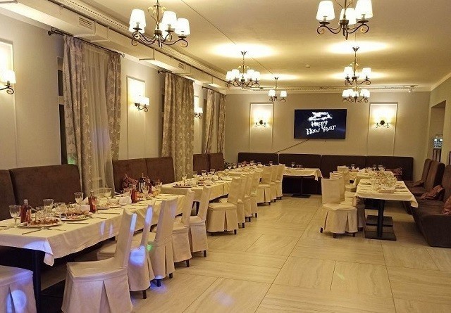 Трактир «Русь» существует в спальном районе города Екатеринбурга много лет и не перестаёт радовать своих посетителей превосходным качеством блюд, высоким уровнем обслуживания и доступными ценами. Помещение кафе может стать отличной площадкой для вашего новогоднего корпоратива. Здесь можно организовать шикарный банкет с вкусными угощениями и развлекательную программу с живой музыкой, профессиональным ведущим, артистами и диджеем. Сотрудники заведения украсят зал праздничной атрибутикой и сделают удобную рассадку гостей. Ваш стол украсят аппетитные блюда европейской, русской и кавказской кухни.