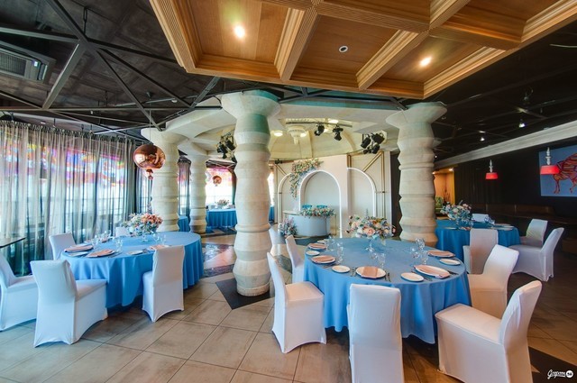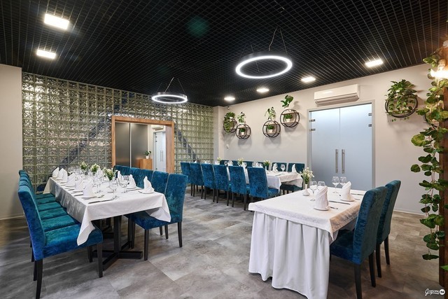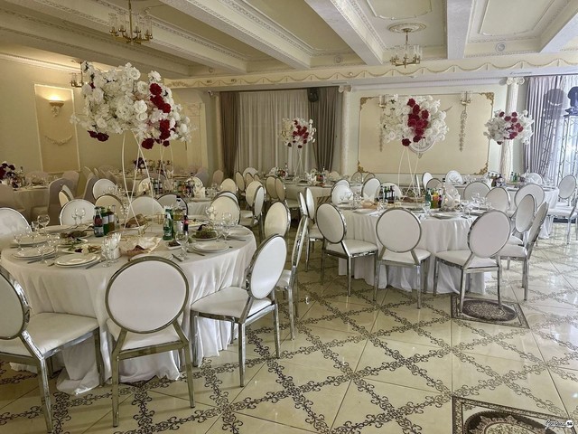 Банкетный зал «Eteria» - идеальное место для веселого свадебного торжества. Здесь просторное помещение, шикарный интерьер, гостеприимная атмосфера и высокий уровень обслуживания. Большое пространство зала позволит вам организовать роскошный банкет или фуршет с удобной расстановкой мебели. Повара приготовят для застолья восхитительные блюда европейской и кавказской кухни. Также в помещении можно установить сцену для выступлений вокалистов и музыкальных коллективов, выделить место под танцпол с диджеем и зону для весёлых конкурсов с аниматорами и харизматичным ведущим. Для гостей банкетного зала предусмотрены отдельный вход и парковка. Кроме того, на территории здания есть площадка для организации фейерверков, салютов и файер-шоу.