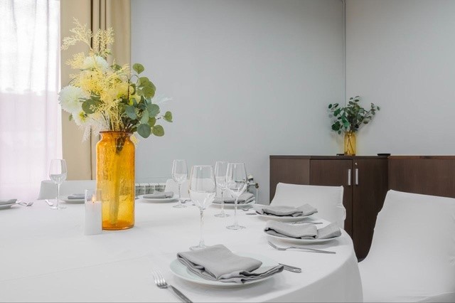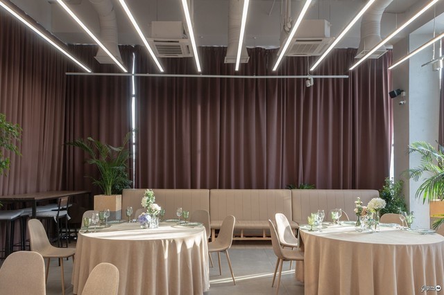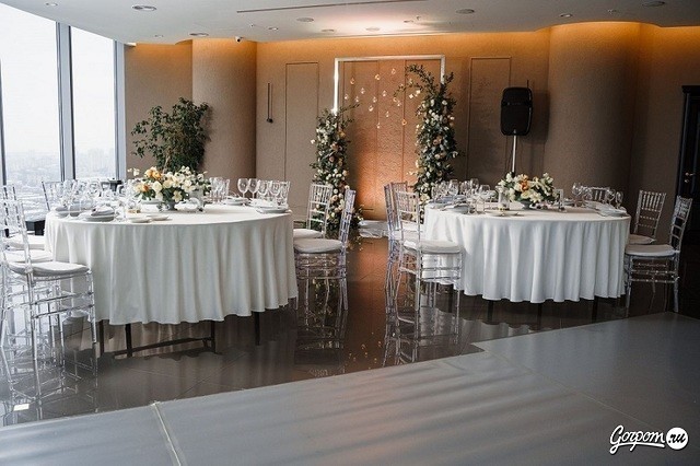 Персонал не только красиво сервирует стол, но и накроет его аппетитными угощениями из специально разработанного банкетного меню. На каждой площадке достаточно места для того, чтобы насладиться трапезой в комфорте, а позже весело потанцевать и поучаствовать в развлекательной программе от сторонних организаторов.