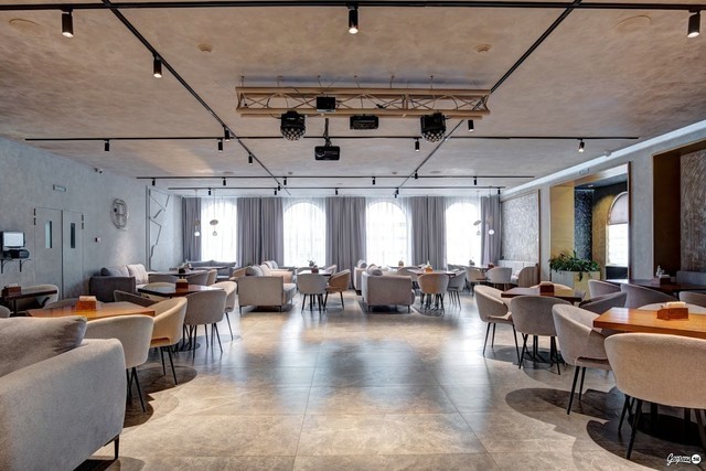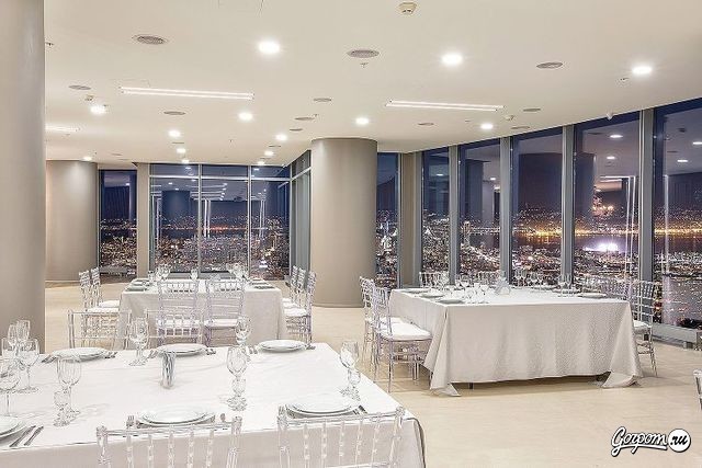 Вместимость: банкетный зал - до 600 человек, ресторан - до 90 человек, лаундж-бар - до 60 мест.